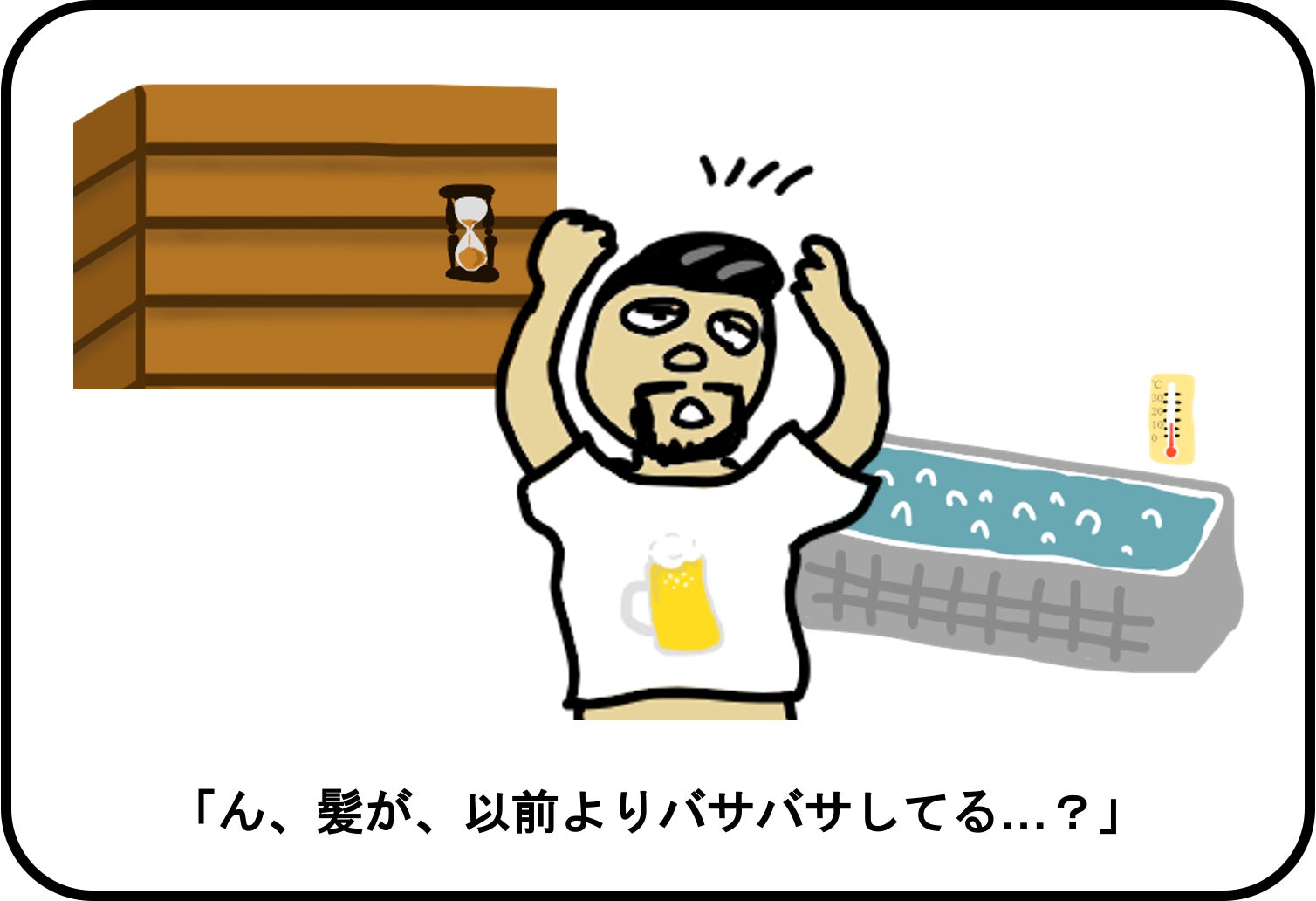 特にサウナハットやタオルを巻かないまま温冷交互浴を繰り返すと、熱が長時間髪にあたってしまい傷みはとても進行します。
