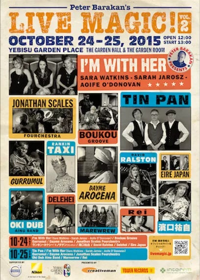 Tin Pan (with special guests 久保田麻琴・小坂忠) / I’m With Her(Sara Watkins - Sarah Jarosz - Aoife O’Donovan / Gurrumul / Dayme Arocena /Jonathan Scales Fourchestra / Oki Ainu Dub Band / Marewrew/Rei