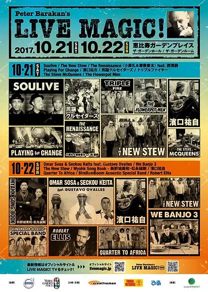 ブロードキャスター、ピーター・バラカン監修の音楽フェスティヴァル、LIVE MAGICは2014年にスタートしました。毎年10月の心地よい秋口に恵比寿ガーデンホールで開催され、ルーツミュージックを中心とした極上の音楽と、食を中心とした多種多様なコンテンツで、多くの大人の音楽ファンからの強い支持をいただけるフェスに成長してきました。6年にわたって他ではなかなか聞くことのできないミュージシャンを世界の多くの国から招聘し、最近はアーティストからも出演希望をいただけるようにもなったLIVE MAGIC。今年も開催に向け準備を始めておりました。しかしながら、国内外での新型コロナウィルスの感染拡大と、収束が見えない現状を踏まえ、今年の開催を断念せざるを得なくなりました。