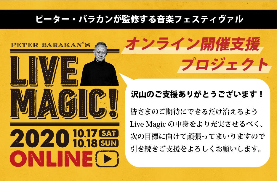 多くの方々からのご支援をいただく一方で具体的なリクエストもいただいています。皆さまのご期待にできるだけ沿えるようLive Magicの中身をより充実させるべく、次の目標に向けて事務局一同頑張ってまいりますので、引き続きご支援をよろしくお願いします!