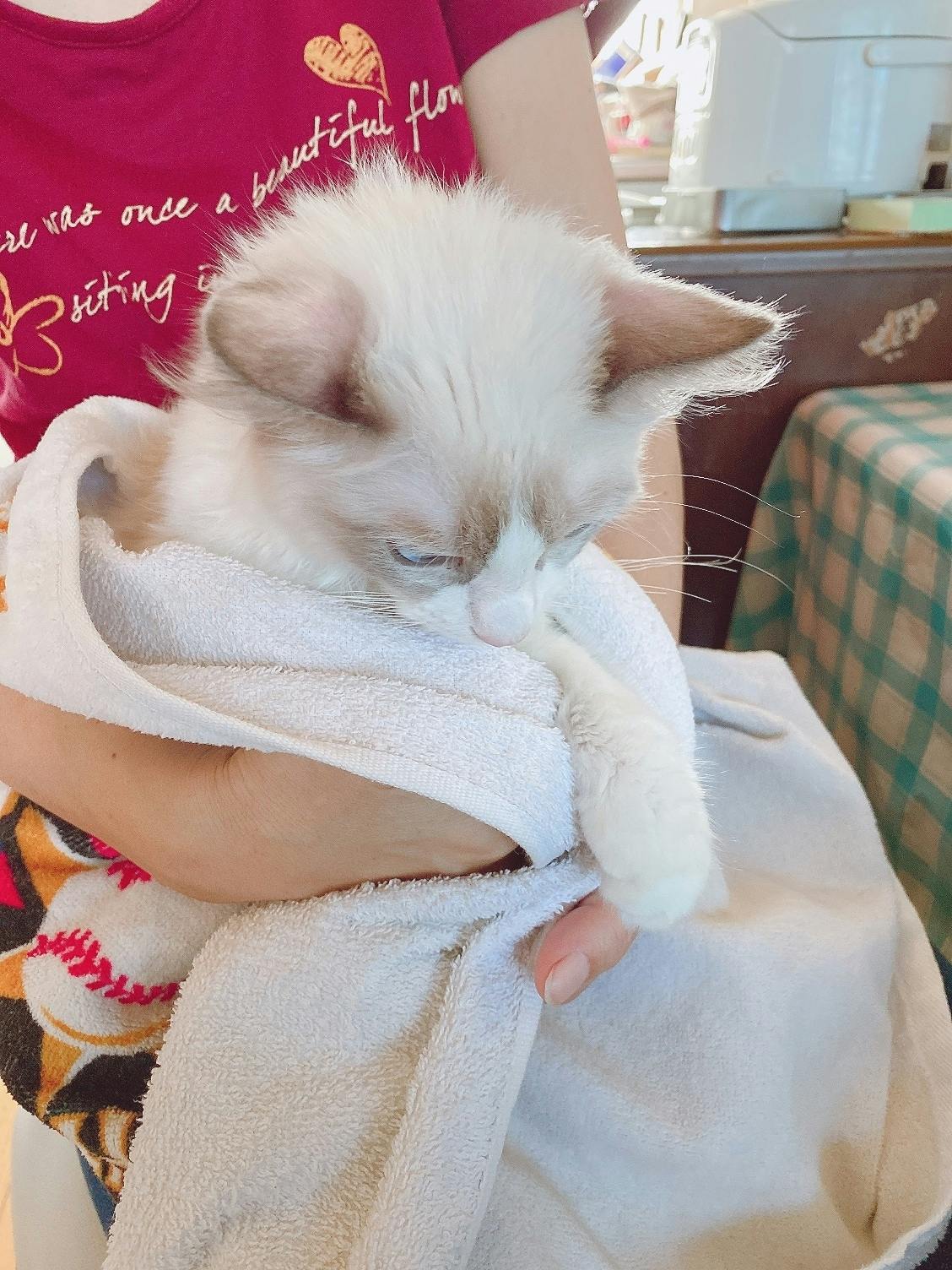 毎日のおやつタイムの様子です。エディは食いつきは悪い方ですが、FIP発症時に比べれば何でも食べるようになりました。好みの食べ物をどんどん見つけていきたいですね!