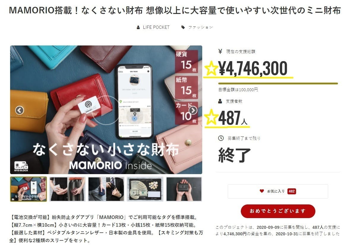 この度は、「MAMORIO搭載 なくさない財布 MiniWallet3 」プロジェクトを