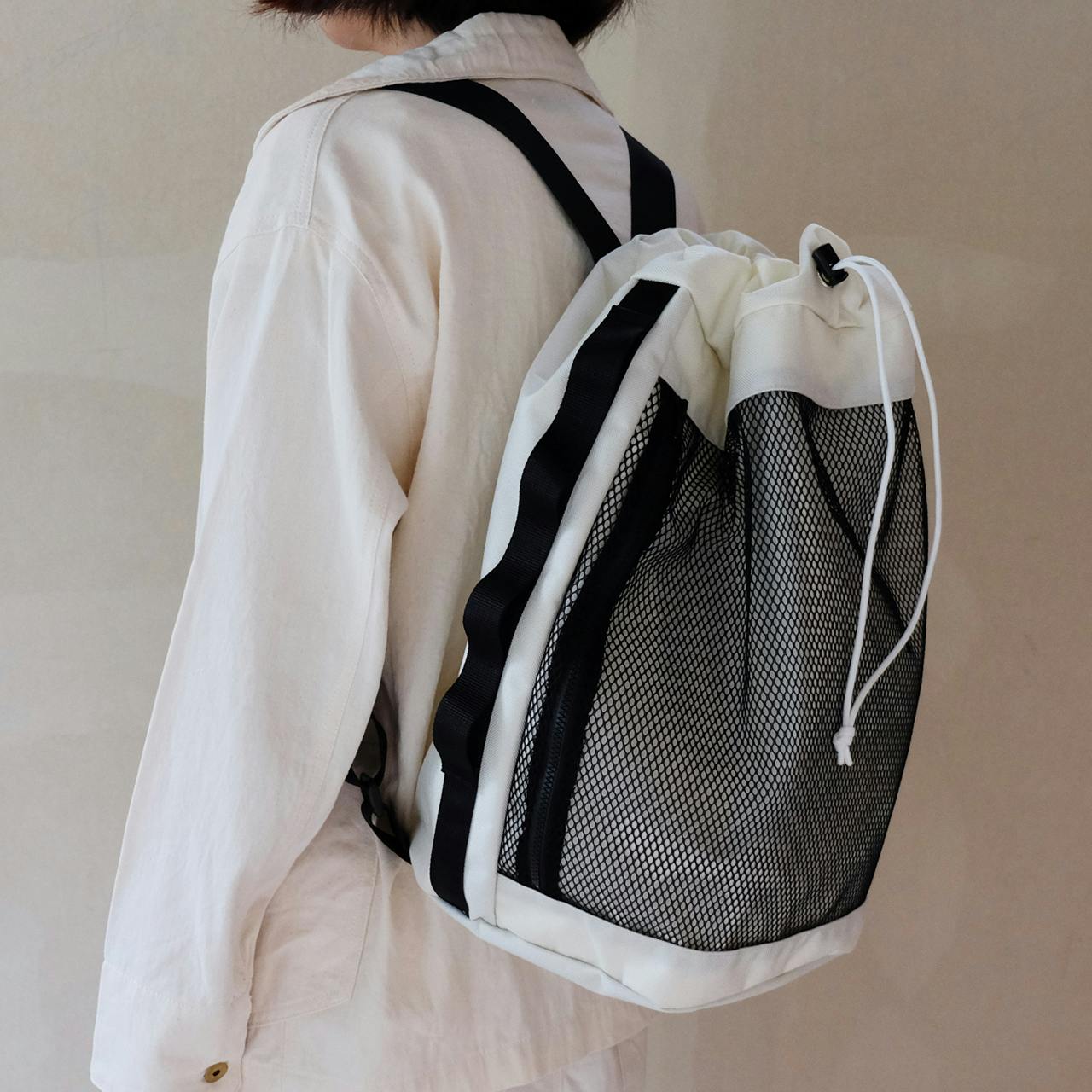 前面に網目のメッシュゾーンを採用することでバッグ内に入れて濡らしたくないものなど、