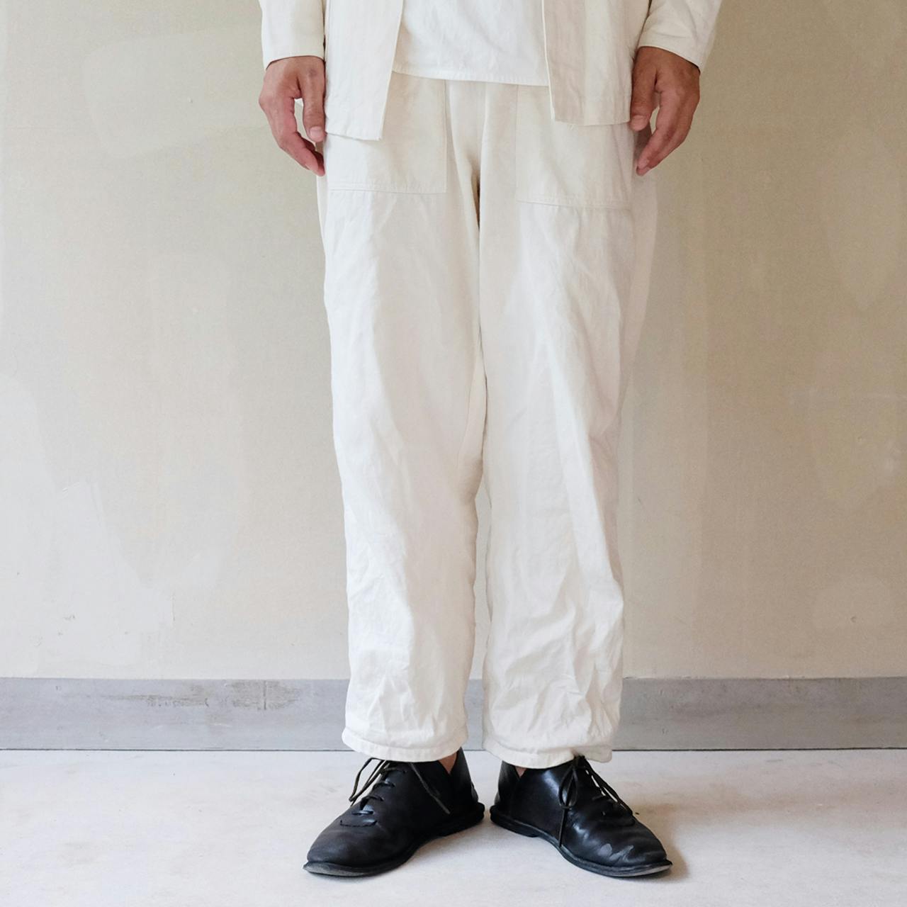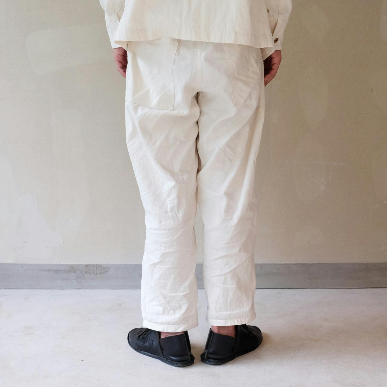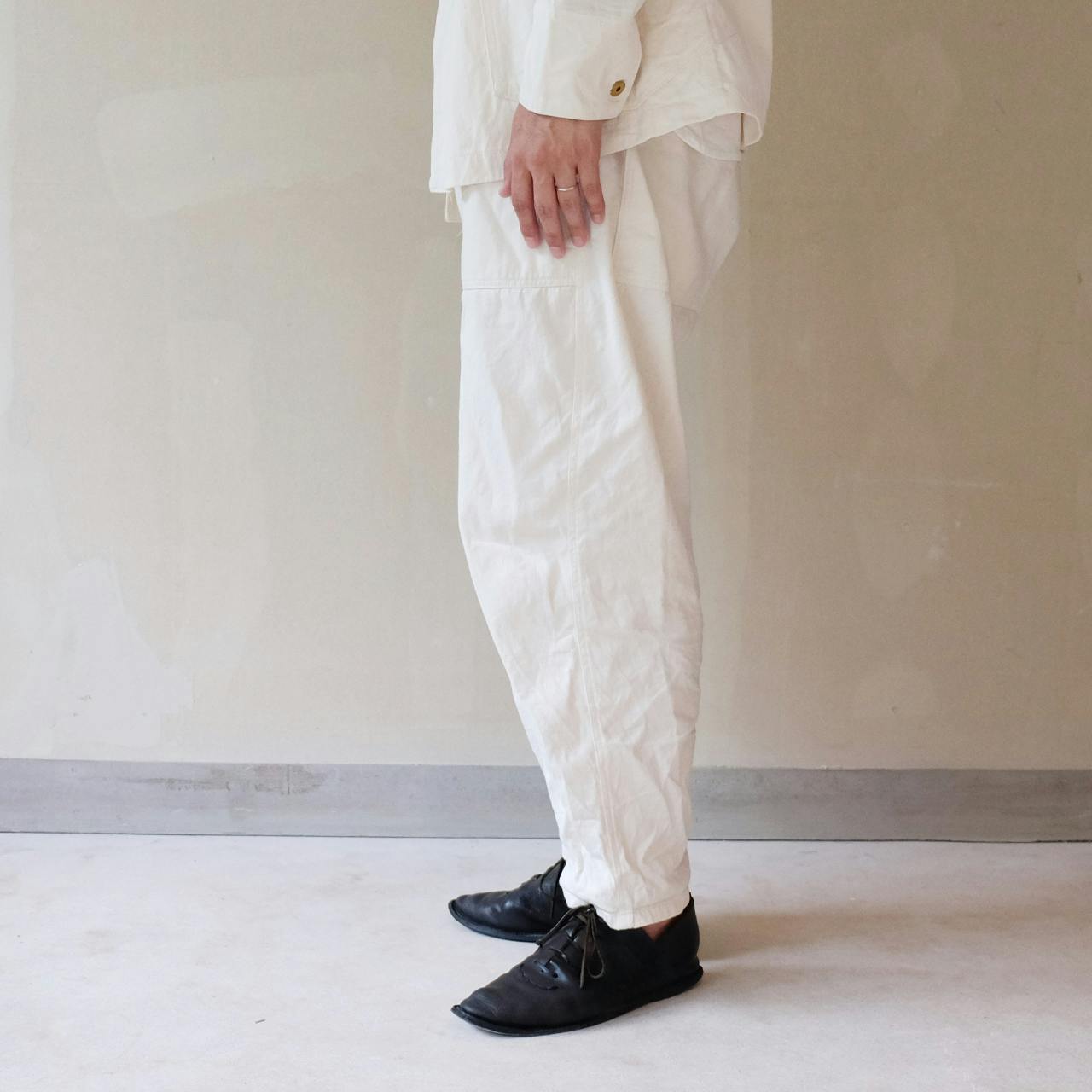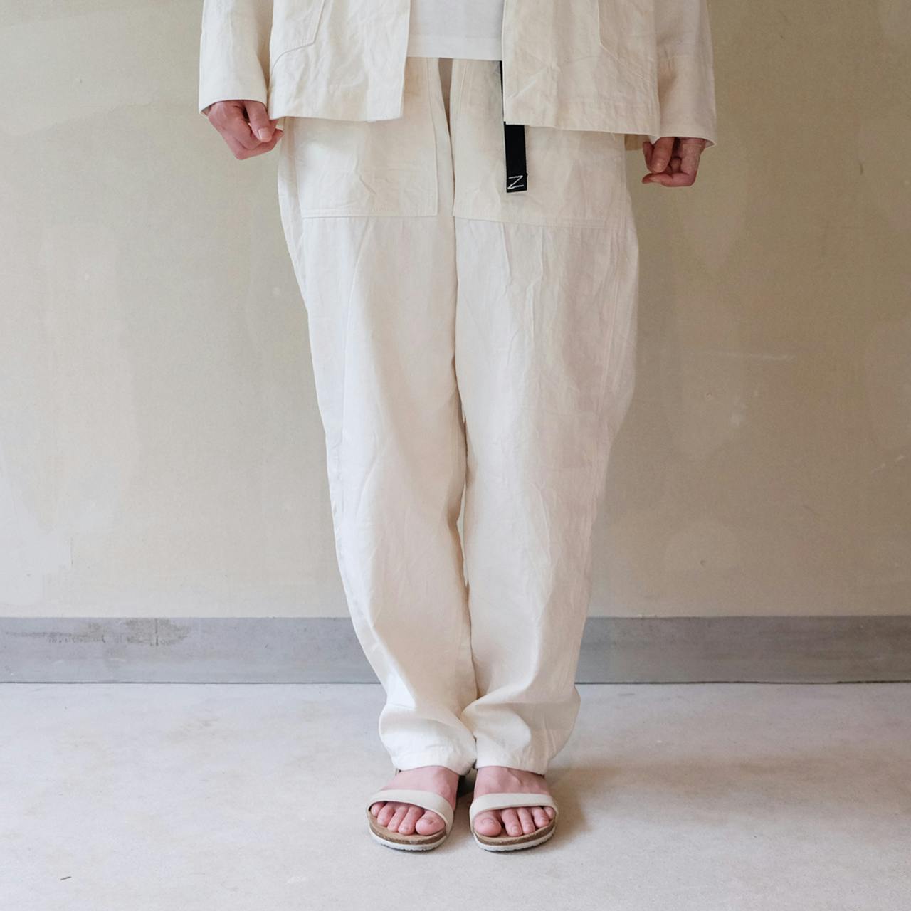 美しいテーパードラインを描いたdoors yamazoeのユニフォームパンツ。