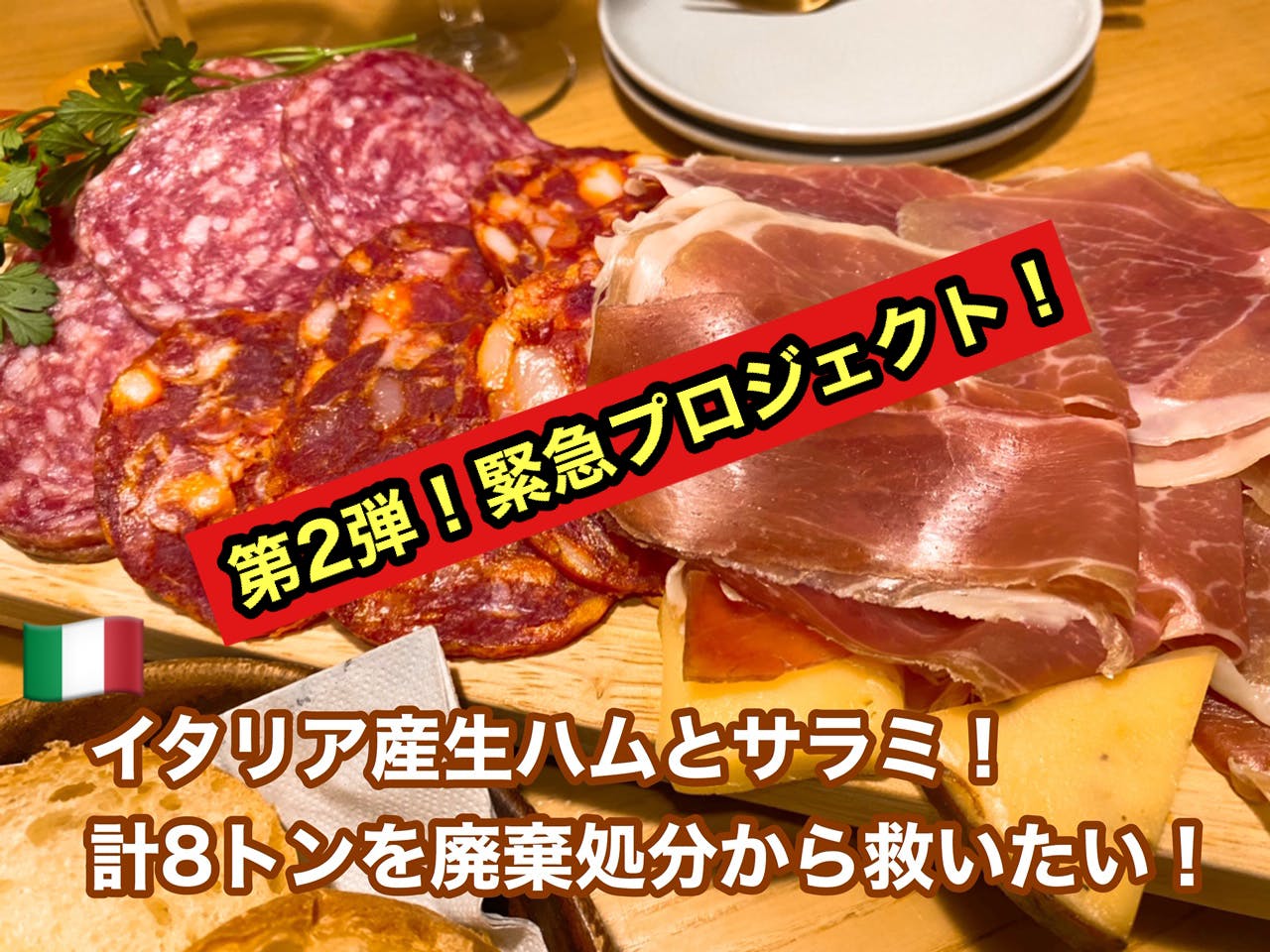 今回、第2弾として、再度プロジェクト【イタリア産生ハム(プロシュート)とサラミ、合計8トンの在庫を廃棄処分から救いたい】を立ち上げさせていただくことになりましたのでお知らせさせていただきます。