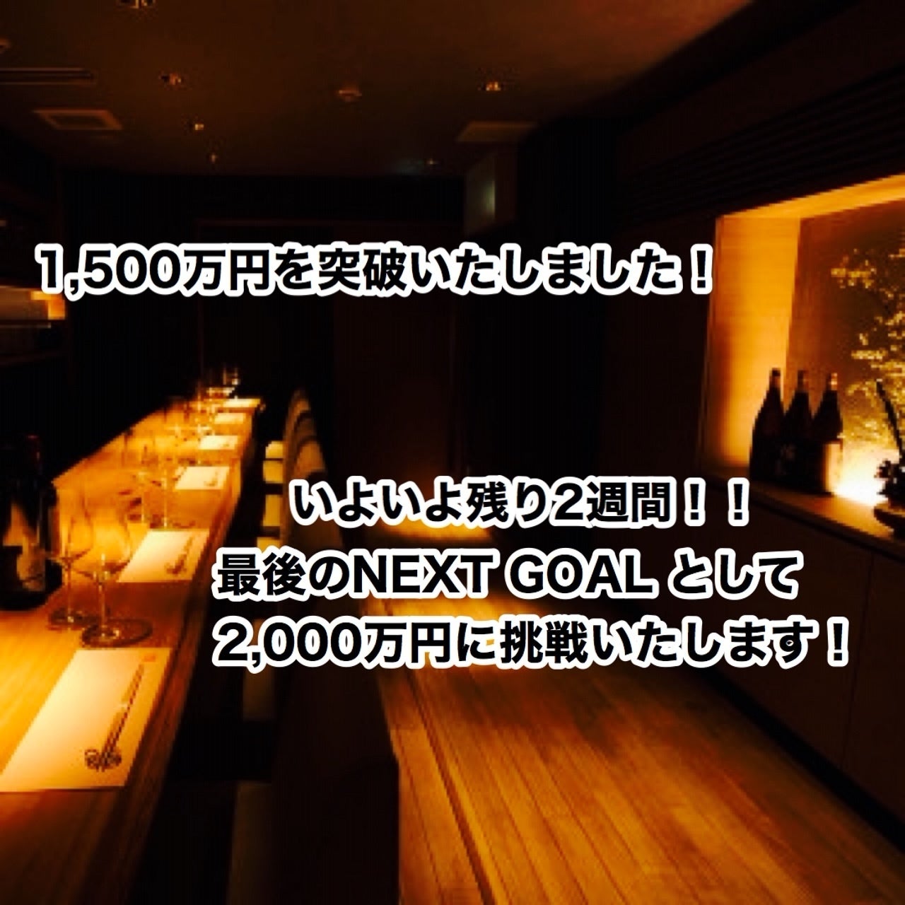NEXT GOALとして掲げていました1,300万円を突破し、本日更に1,500万円を突破いたしましたのでご報告申し上げます。