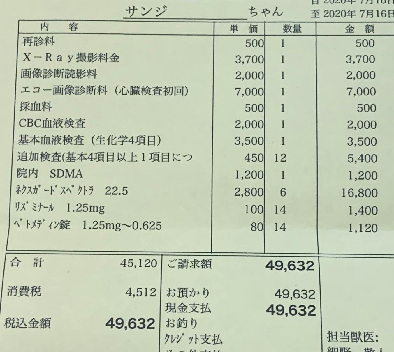 ここ最近引越しをし、今年7月新しい病院で狂犬病の注射を行う為診察を受けたところ、心雑音が聞こえ、健康診断を行いました。