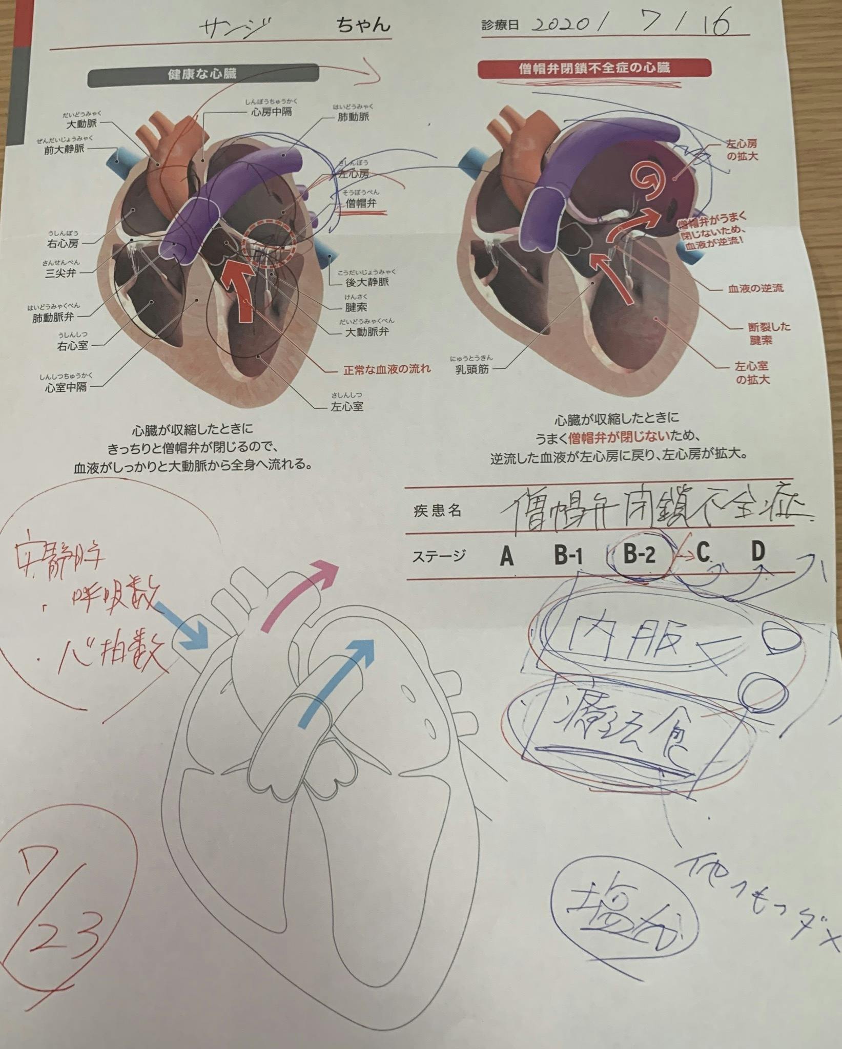 7月16日 病院に通院をし、僧帽弁閉鎖不全症と診断される。(ステージ3段回目)