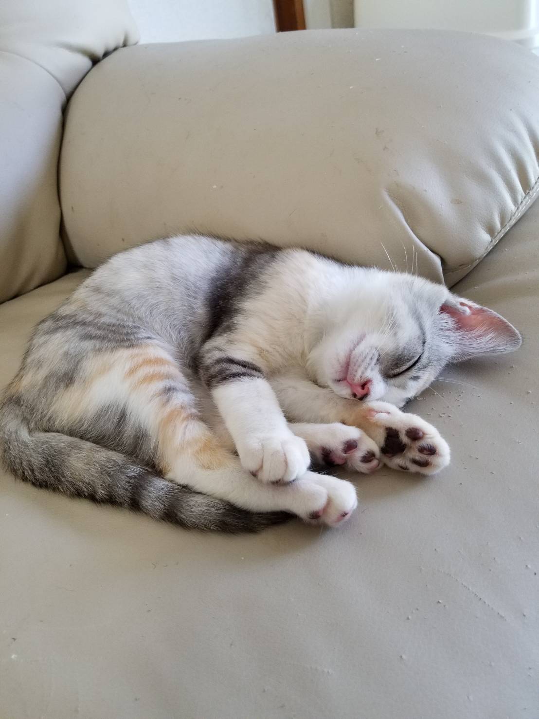 プリンちゃんとの出会いは南房総のある漁港でたくさんの子猫が生まれて、その中で一番小さかった子猫でした。保護した当時400gしかなかったプリンちゃんは人見知りでいつもお家の隅っこに隠れていました。一ヶ月程経った頃ようやく環境に慣れてきて、抱っこすると甘えるように膝の上でフミフミするような可愛い子でした。