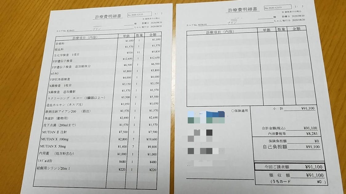 プリンちゃんのかかっている病気、猫伝染性腹膜炎(以下FIP)には、現在日本では未承認の薬、MUTIANで高い効果が確認されています。ただこのMUTIAN、保険適用外かつ輸入品となるため、非常に高価なお薬です。(MUTIAN 100mg 2800円)