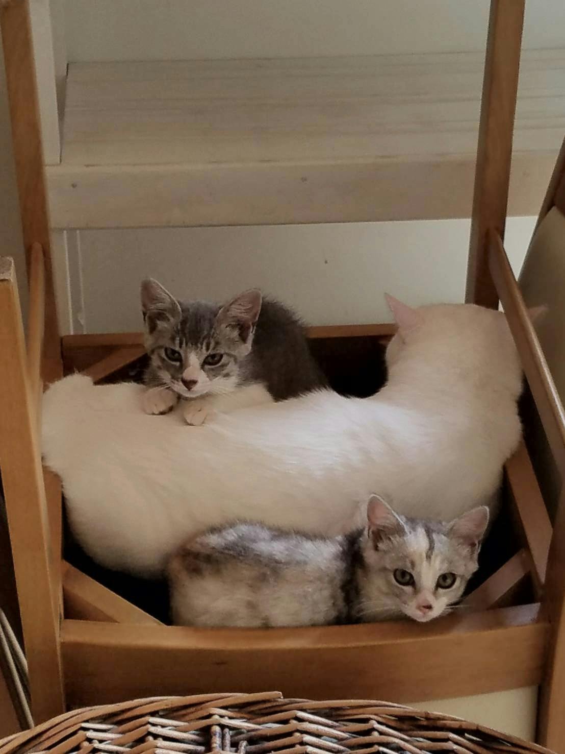 兄弟と一緒に保護したばかりのプリンちゃん(右)