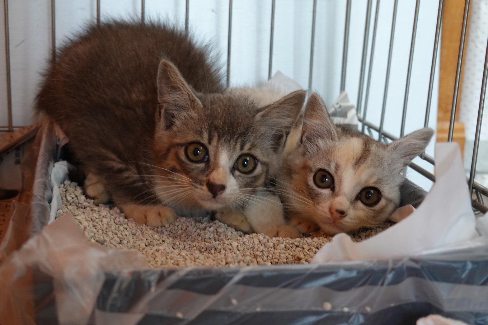 兄弟と一緒に保護したばかりのプリンちゃん(右)