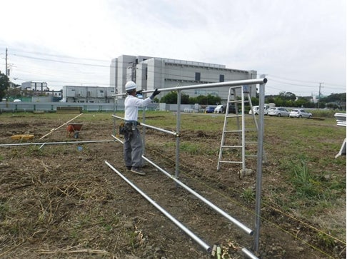 隙間なくビッシリ生い茂っていた高さ2mのススキを刈り取った後、柵の設置が始まりました。