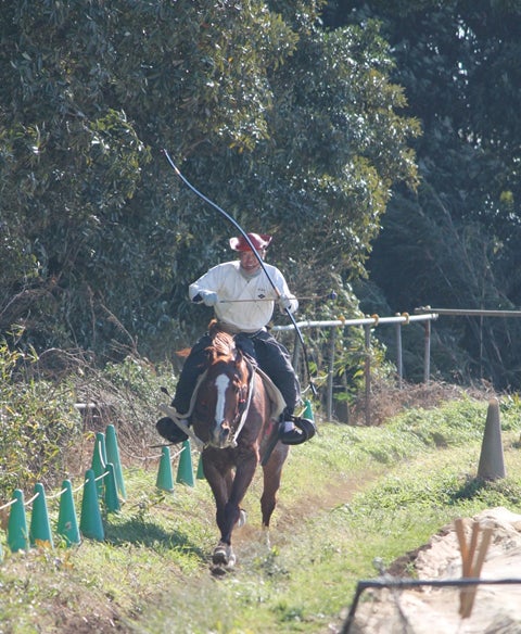 矢を放っては腰から抜いて番える、矢を放っては腰から抜いて番える、この迫力ある連続技を目の当たりにできる新馬場の完成にご期待ください。