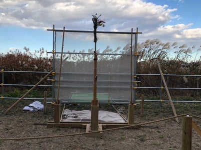 設置途中の的。