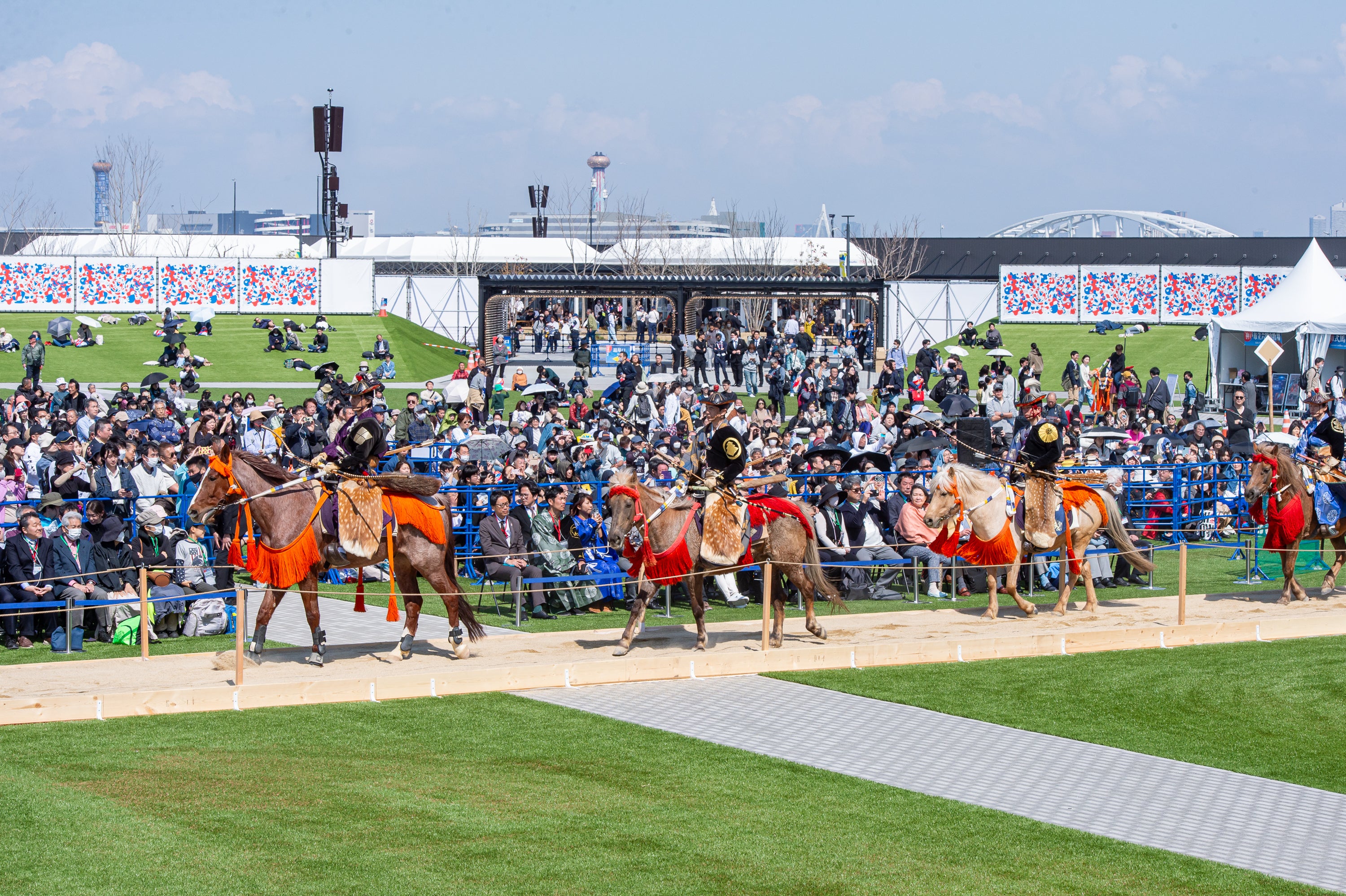 天下泰平・五穀豊穣・万民息災を祈念する流鏑馬ですから、一大国家事業たる万博において、開幕前に、その安全と成功を祈願する流鏑馬・笠懸を執り行うことについて、文化的、歴史的、精神的に大きな意義を見出しているところです。