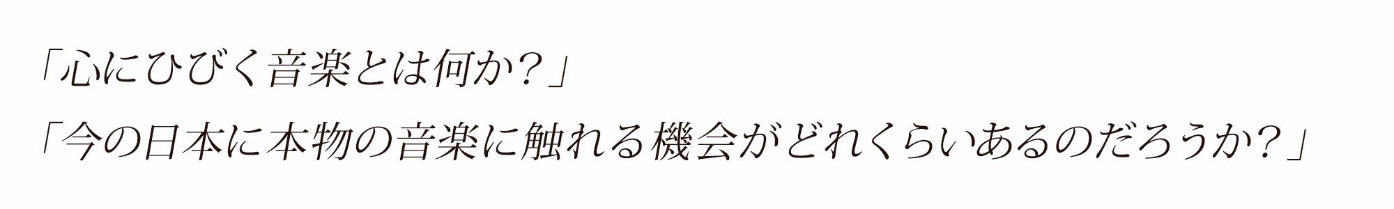 音楽は、時として言葉よりはるかに雄弁にわれわれの感情を呼び覚ますことを、私たち人間は歴史から学んでいます。このACADEMYを通して生まれる気づき、学び、共感が子供たちや音楽に携わる多くの人々に伝えられ、そこから生まれていく音楽によって、今後の私たちの生活が知的興奮に満ちた豊かなものになっていくこと──それが私たちの願いです。