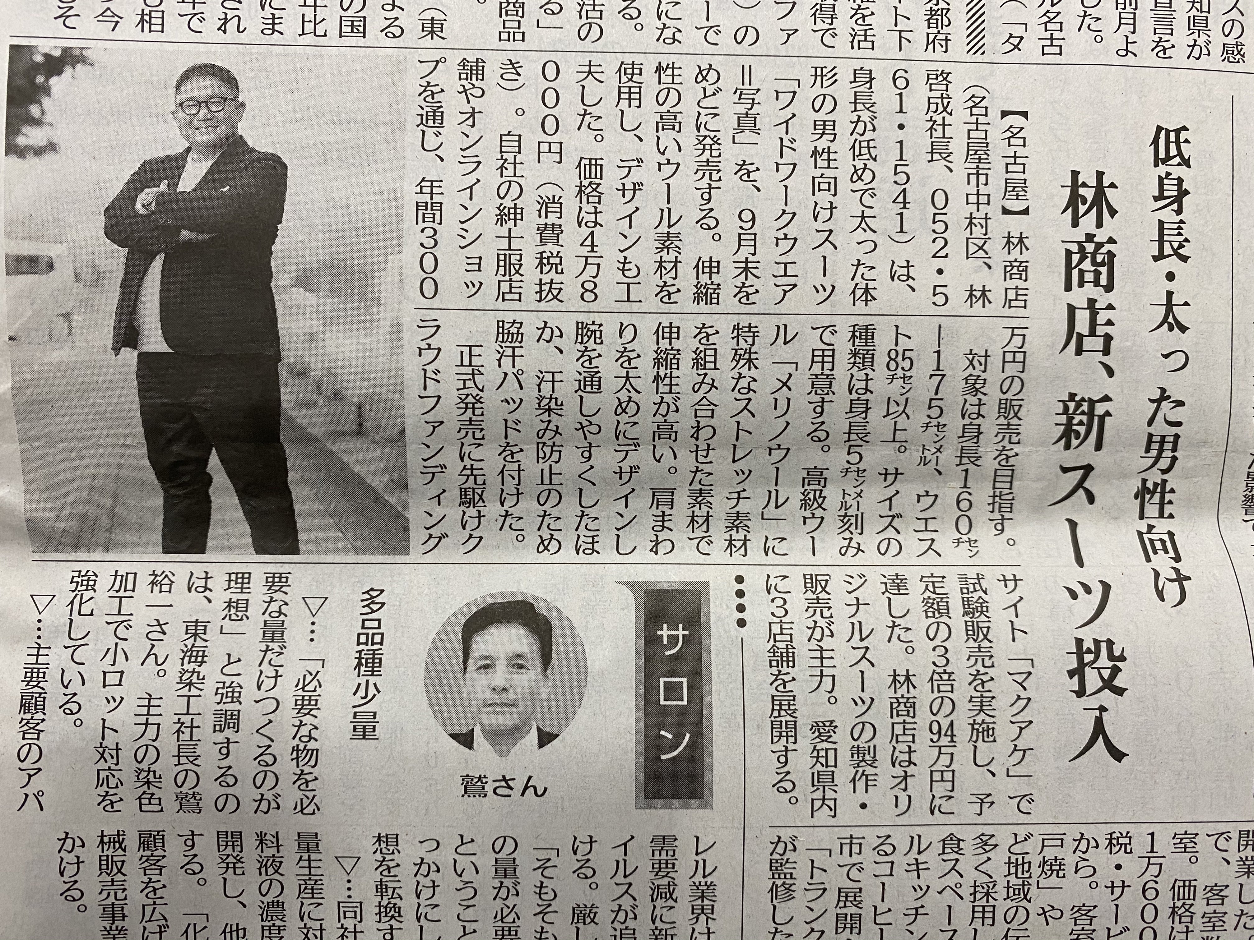 初めまして!WIDE WORK WEARの林です。林って誰だ?というかたもお見えになるかと思いますが、そちらはまた次回!まずは、僕たちのクラウドファンディングで紹介する商品。おなかが成長してしまった、背がそんなに高くない人の為にスーツを開発致しました!素材はもちろんなのですが、デザインに関しては、本当に、試作を繰り返し、自分達の思うシルエットと仕様が出来上がりました。おなかが大きくなって、なかなか似合うジャケットがないという方にこそ、ピッタリの1着に仕上げた自信はありますので、ぜひ、チェックして欲しいのです。そして、先日取材をして頂いた、日刊工業新聞が記事を書いて頂けました。凄く嬉しかったです!業界紙ではありますが、全国紙ではありますし、プロダクトを評価して掲載頂けましたので、ぜひ、コレを機に注目度を増やす事が出来たら嬉しいなぁ〜と!WIDE WORK WEARをよろしくお願いします!