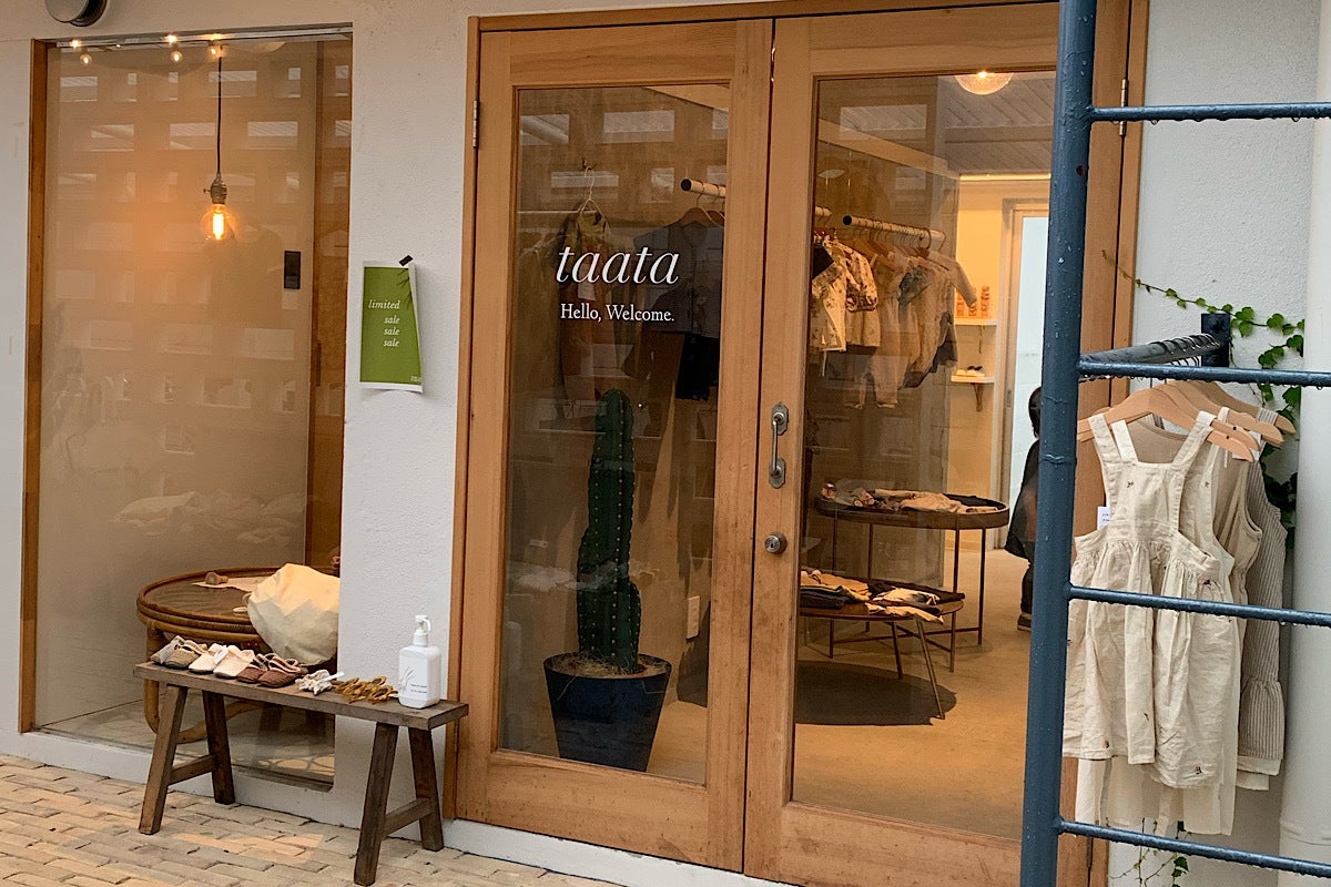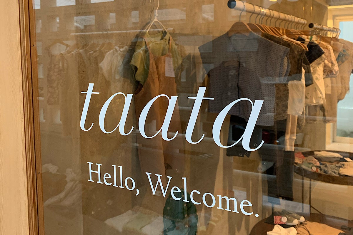お店の名前はtaata。妻が世界中から探し回った商品を並べる、妻が主役のお店です。週に4回だけの営業、2人の子どもを連れてマイペースに仕事をしています。