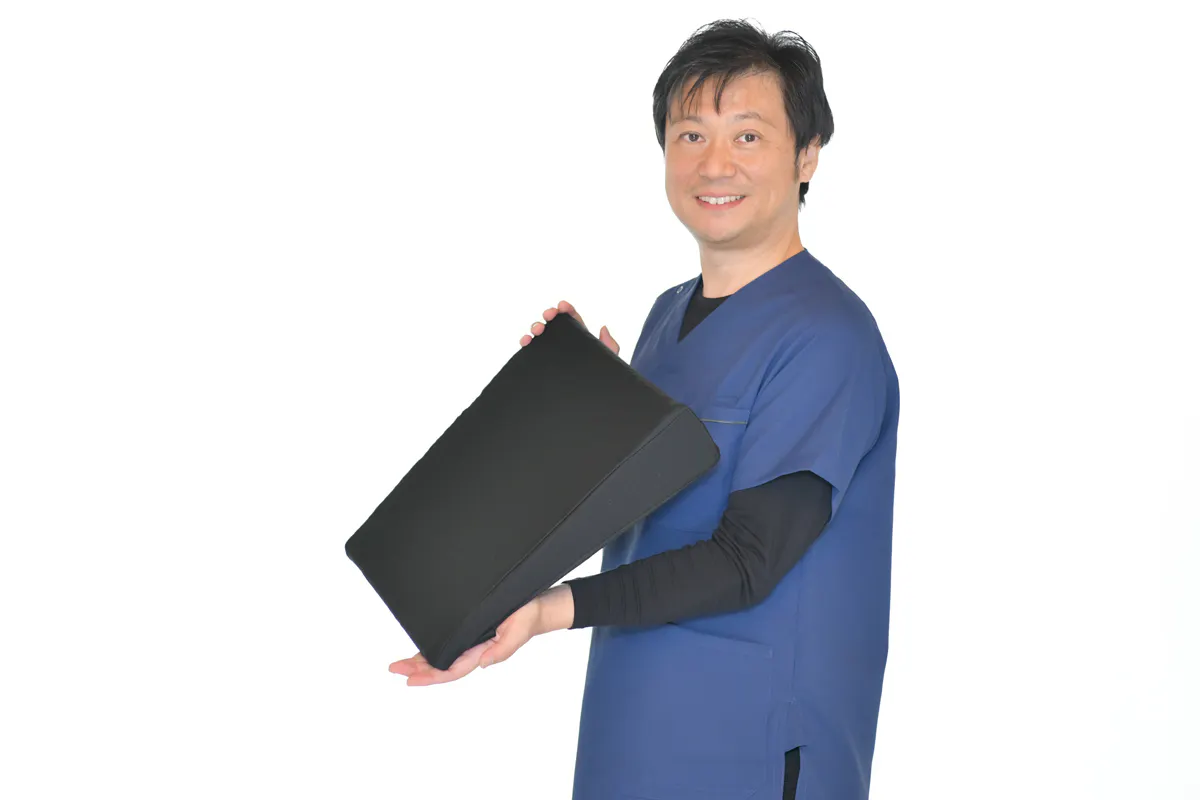 祖母の膝や腰の痛みへの想いを持って柔道整復師になった私は、今のコロナ禍での「座り方」に一石を投じるために、この座布団を作りました。