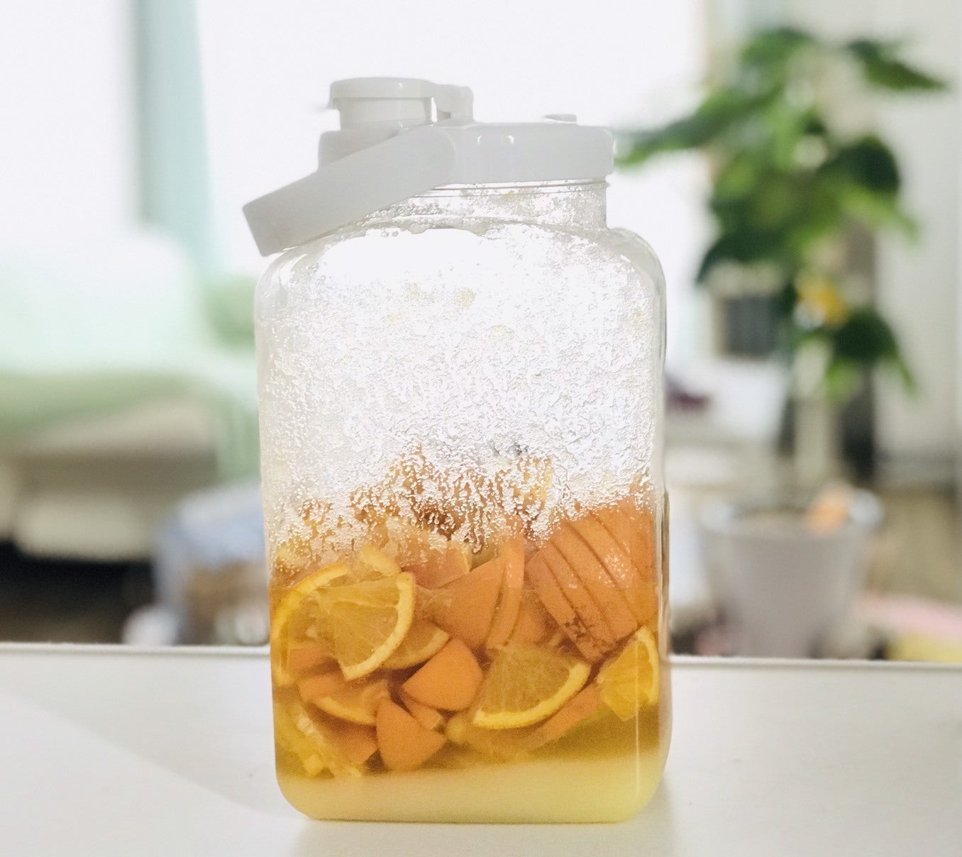 オレンジの酵素ジュースを作った時のお写真です。ここから三か月熟成します。実施スケジュール