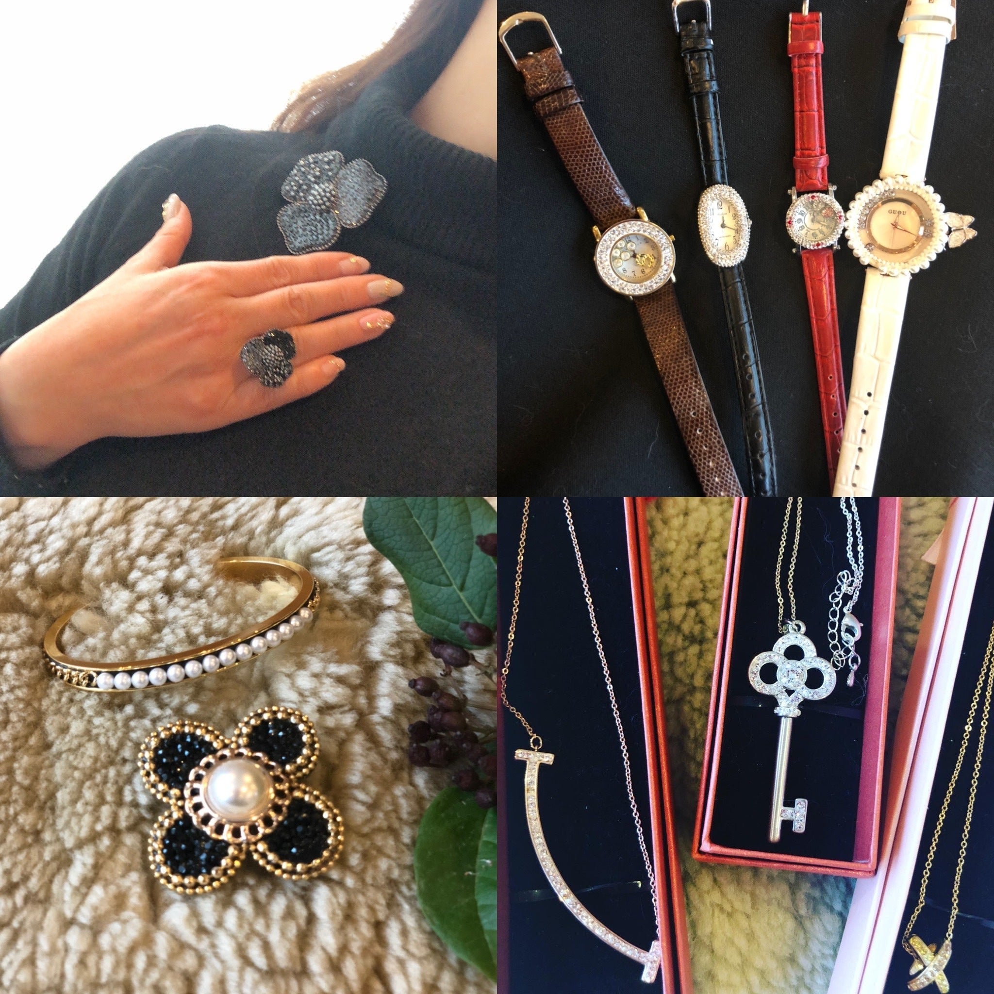 グルーデコの作品の数々。時計やアクセサリーをお作りいただけます。