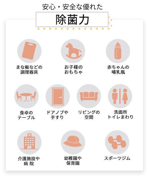 妻が初子で今年の2月に出産を致しまして、その中で妻がアルコール除菌が全くダメだった為それに代わる商品を探している中でアルコール不使用と言う商品をドラックストアーで見つけ使ってみると効果はとても素晴らしいものでした。