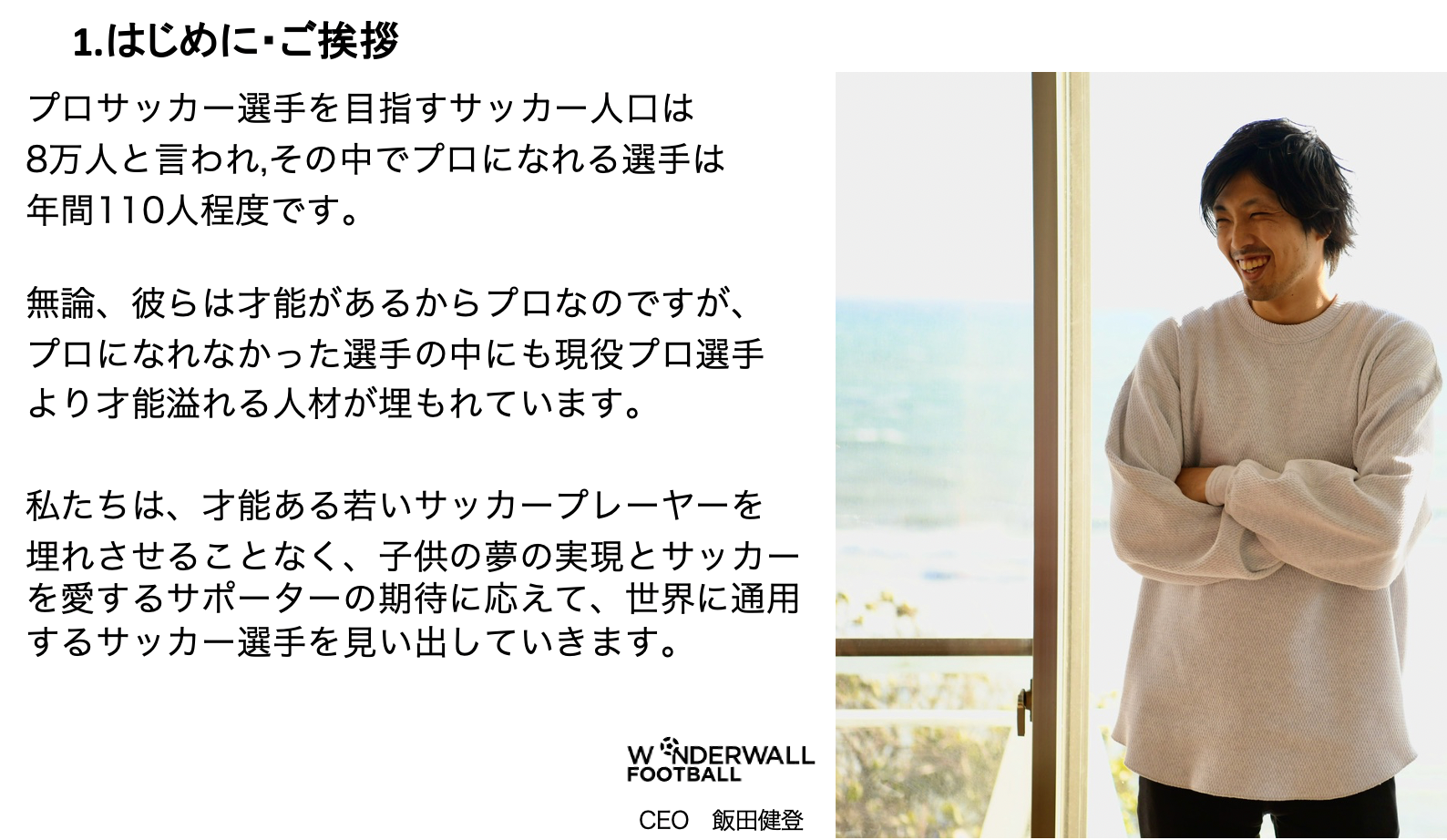 ①選手自身が自分のプレー動画、強み、特徴を公開できる選手データベースを作る。