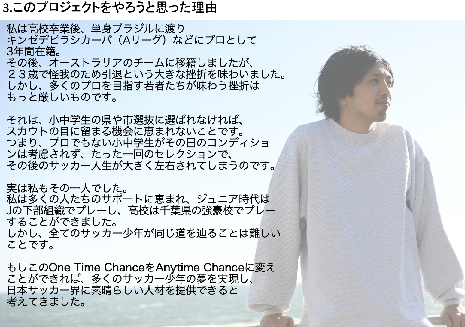 ●サポーターのファン投票で、無名のサッカー少年を育てる喜びの提供