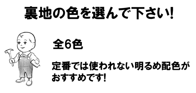 2.裏地も6色から、カラフルに組み合わせ出来ます。