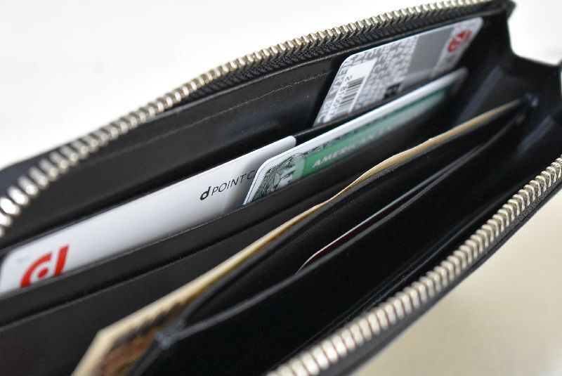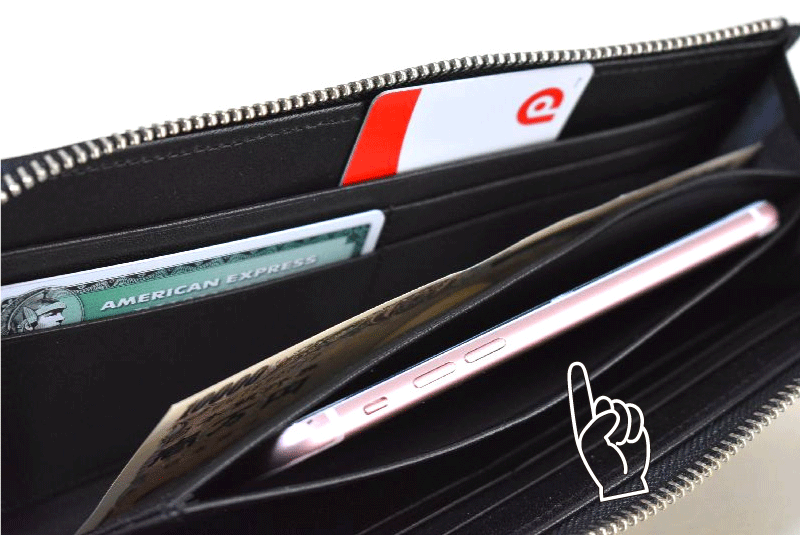 L型ジップのロングラウンドタイプです。片手でも大きく財布が開きますので大変取り出しやすい構造、V字に開く為収納力抜群です。またセンターポケットはモバイルポケットとしてスマートフォンを収納可能な優れものです。(コインポケットとしても可能)そしてお札の収納力はNo1!