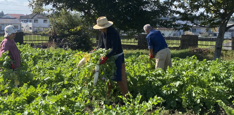 このような、様々な「宝」の人達に実情を話し協力を貰いながら、数々の野菜を作り、見事な商品が出来ました。「宝」の方々がら、この畑の土は軟らかいと言われました。私は種子島で柔らかい農地で育ち、安納芋を食べていました。農地は軟らかいものだと思っていましたから、聞いてびっくりしました。75年の間、畑や田んぼは、農薬や化学肥料等で痩せ細って硬くなっているのです。