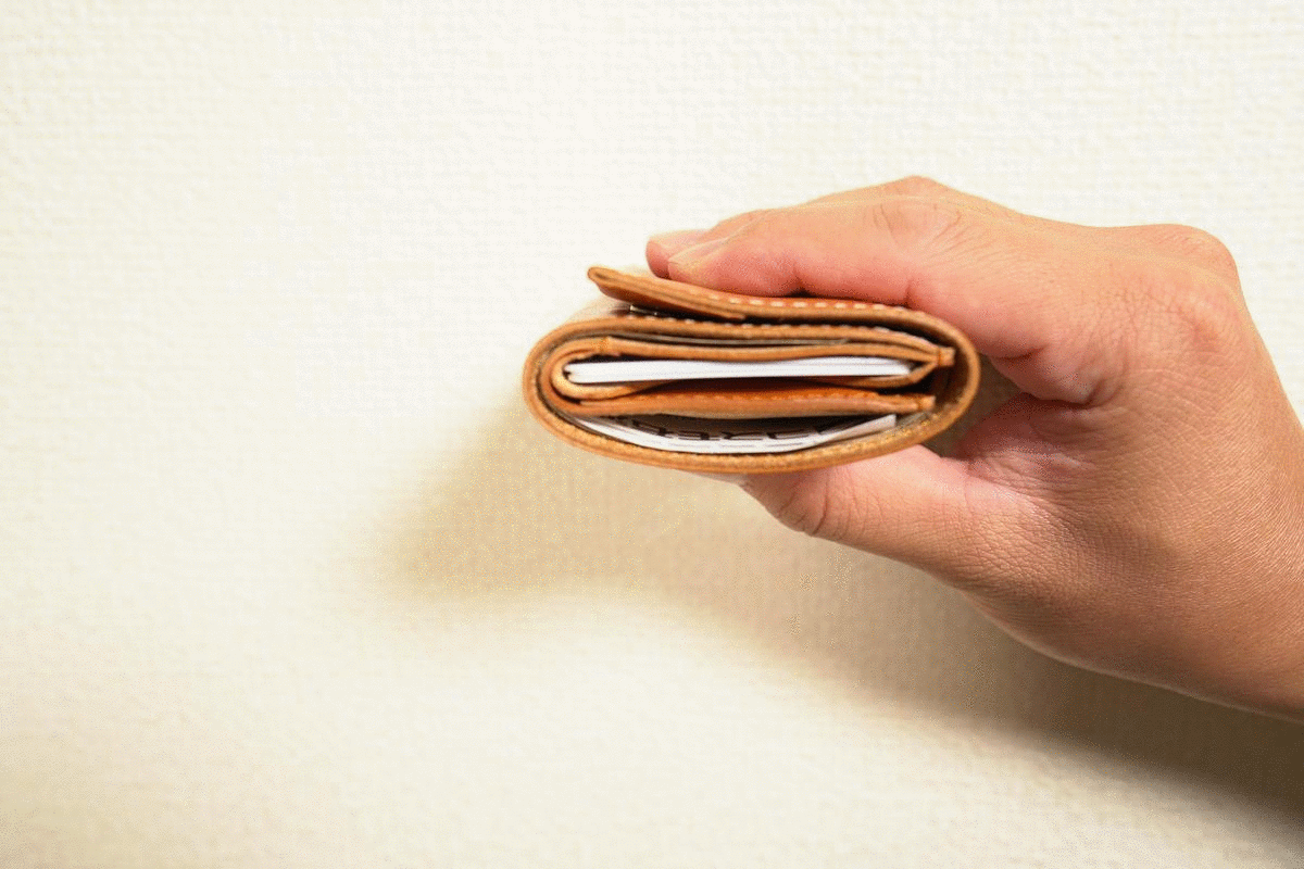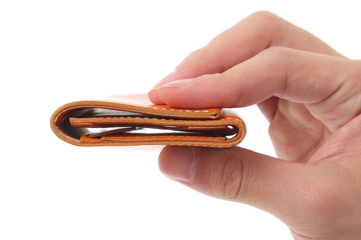 薄さに固執した財布は財布の幅がどうしても出てしまいますが、”Hand Bit”は幅がたったの7.4cm、しかも厚みは2cm以下なので薄さだけを求めた財布よりも収納できるスペースが格段に増えます。