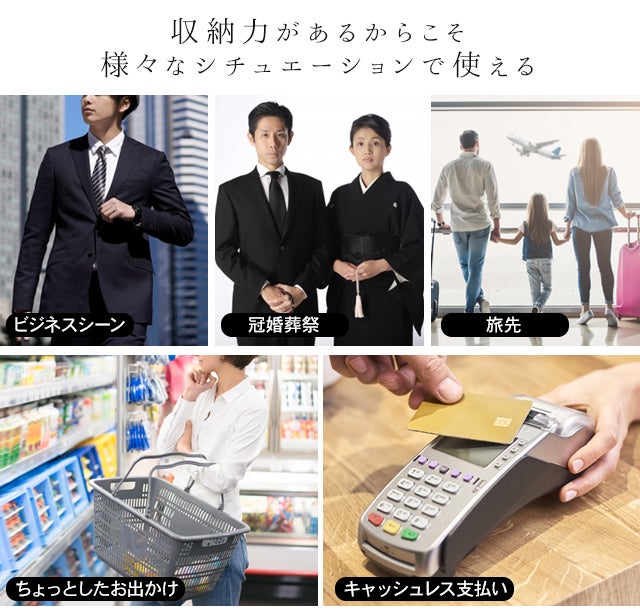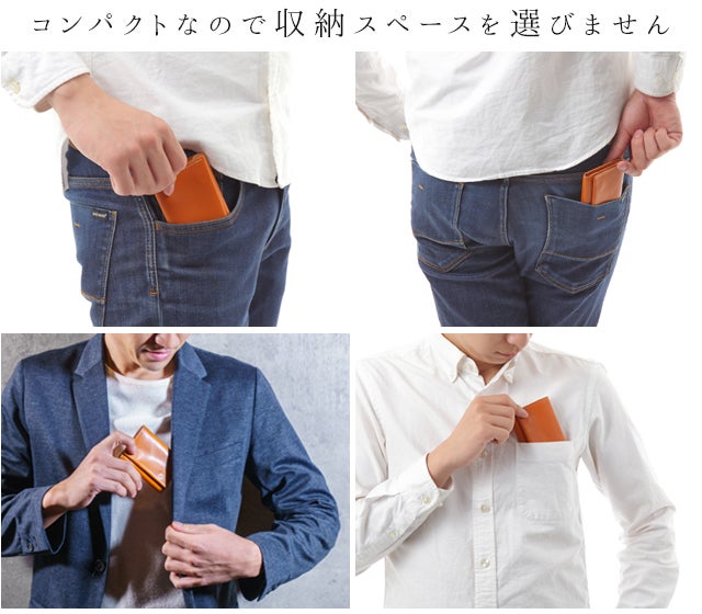 バッグの中でもパンツの後ろポケットでも、スーツの内ポケットでもどこでもすっぽり収納できるようにコンパクトなサイズの設計となっております。