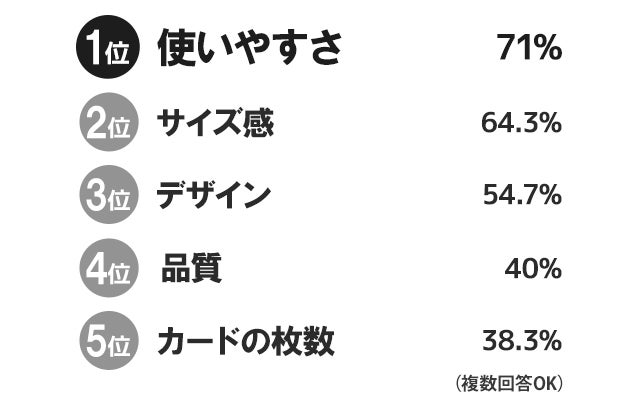 小さくて薄い財布を買うときに何を重視するのかを調べるために、300名の男性に聞いてみました。