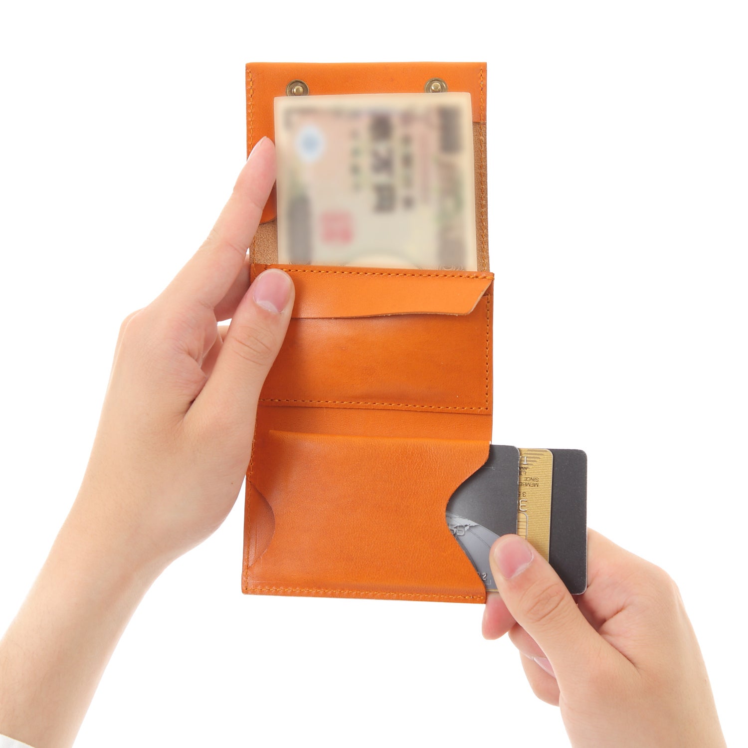 まるでキーケースのような佇まいで、上質な栃木レザーを使用した”Hand Bit”はメインの財布としてもオフタイムや近所へのお出かけ、催事の折にサブの財布としても使える便利なお財布です。