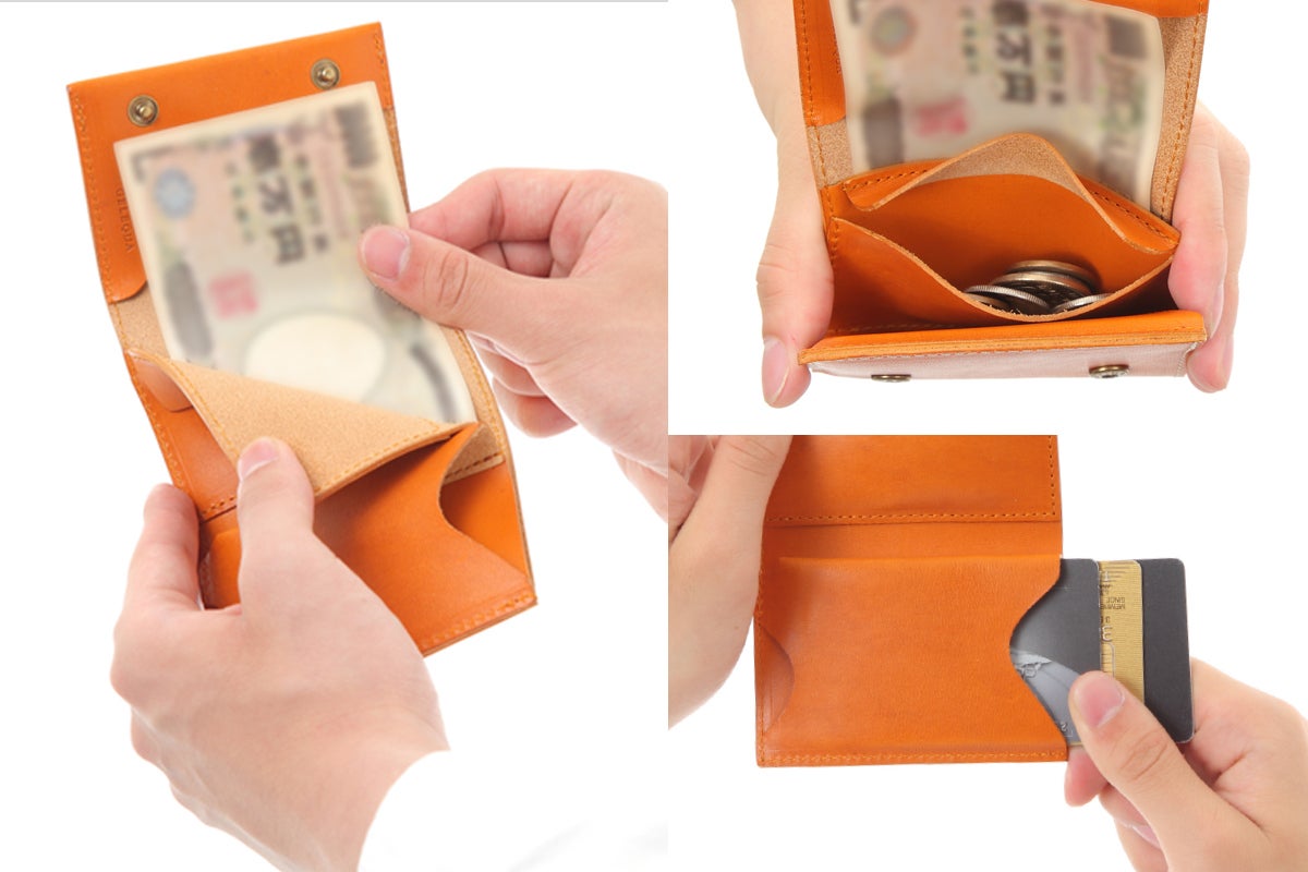 ”Hand Bit”はお札や小銭、カードもしっかり入るのでキャッシュレス派のあなたにはメイン財布として使え、