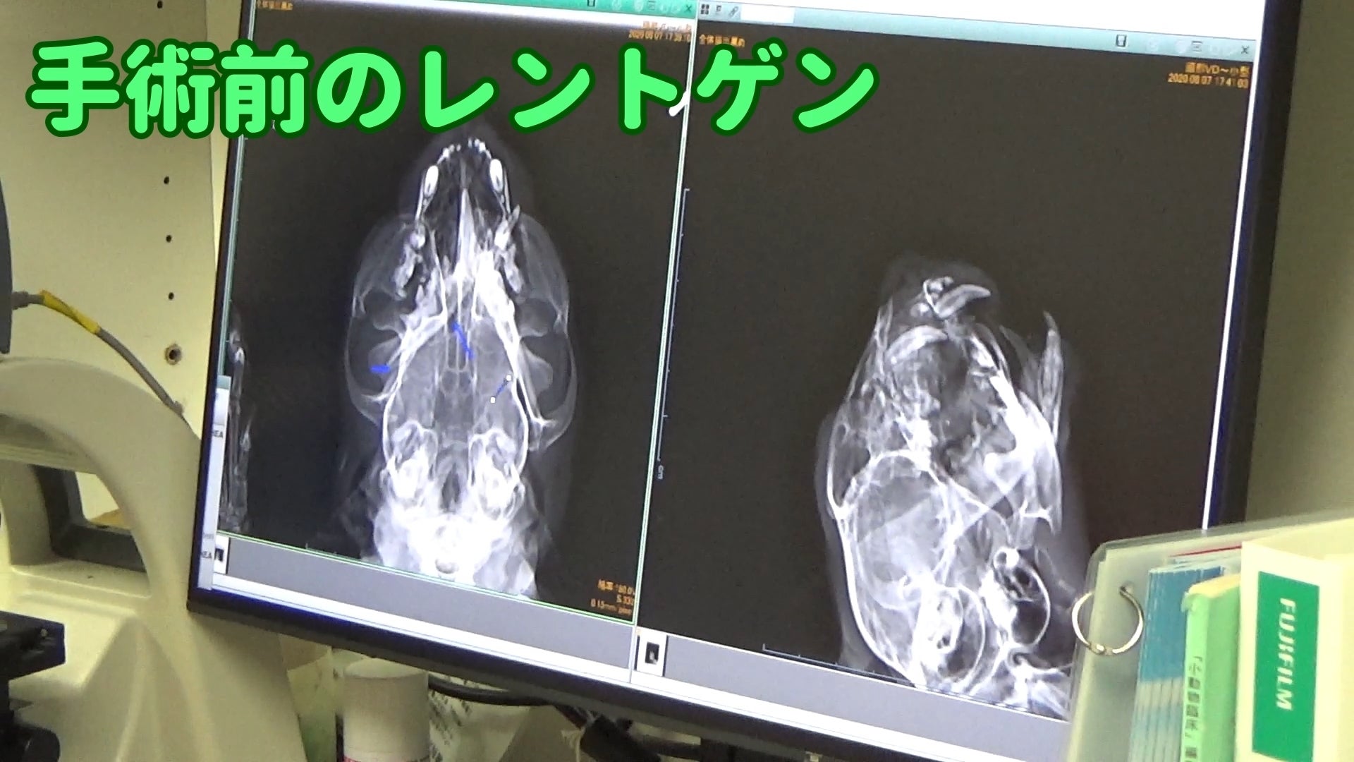 見ただけでも、顔やアゴにの骨が折れていると分かりましたが、診察の結果、下あごが数か所砕けてずれており、口の中の天井部分が全部はがれてしまい、歯や骨がむき出しになっていました。