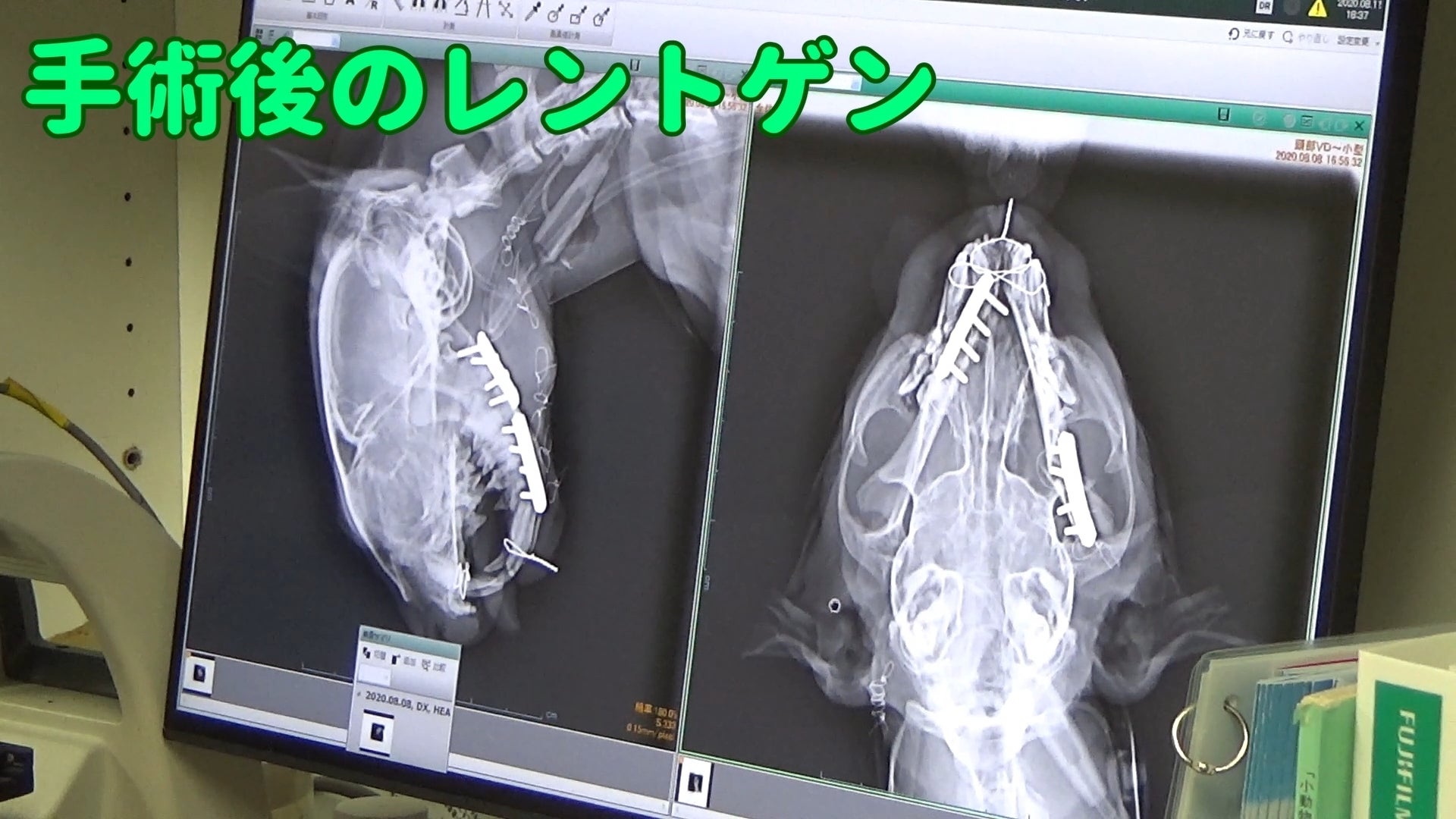 剥がれ落ちていた口の中の天井部分は縫合し、ワイヤーを入れています。