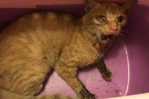 茶チビちゃんもお外で発見した子です。怪我をしてからおそらく4,5日が経過しているようで、