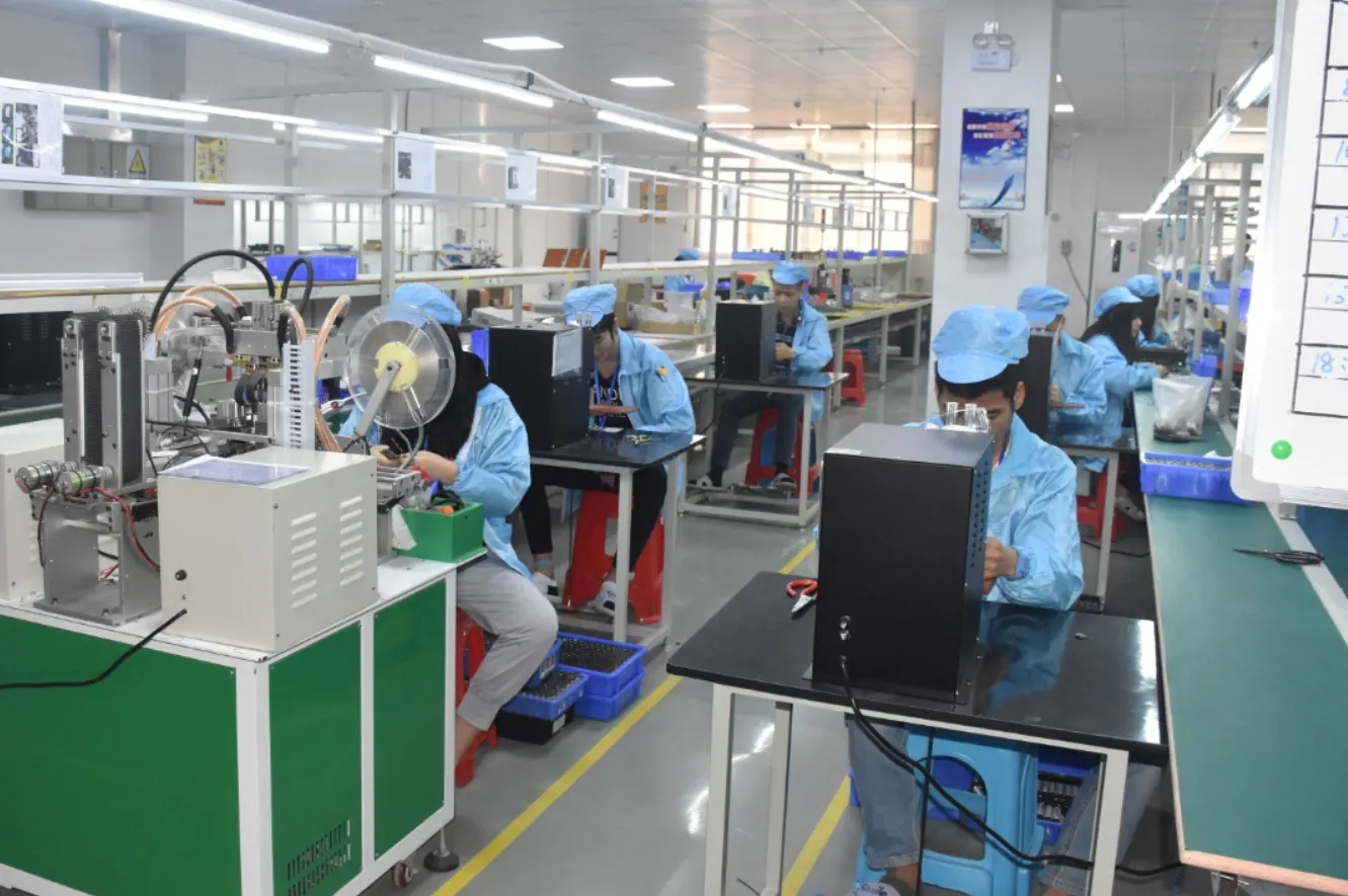 中国工場での検品シーン(出荷する全てのバッテリーを専用機にセットし検品)
