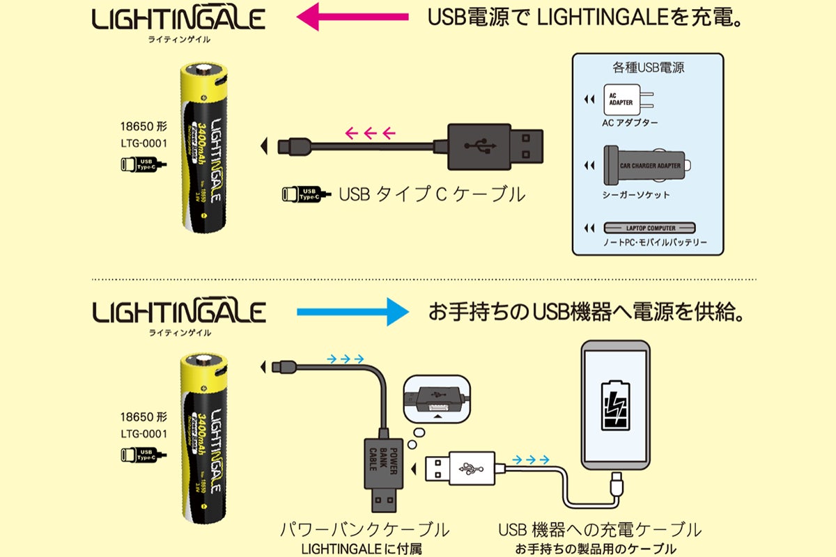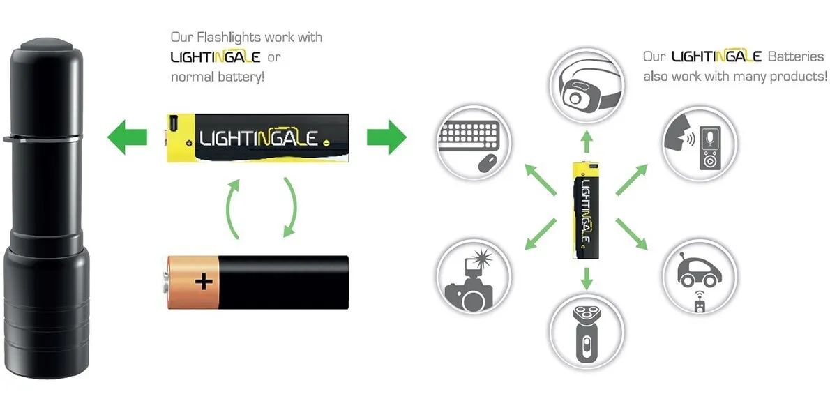 LIGHTINGALEブランドとして世界先行販売となる『乾電池型モバイルバッテリー』。