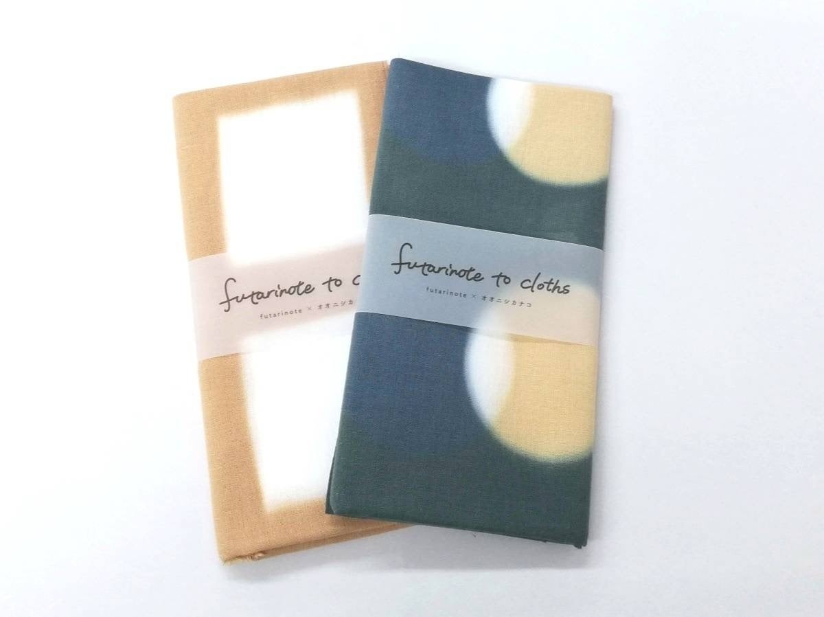 futarinote to cloths 2種(Twilight Dew・樹と環)オオニシカナコ氏がデザイン・制作を手がけた1枚1枚が手染めの伊勢木綿100%クロスです。全2種類。アルバム「ふたりのおと」に収録された楽曲 "Twilight Dew" "樹と環" をそれぞれイメージしています。