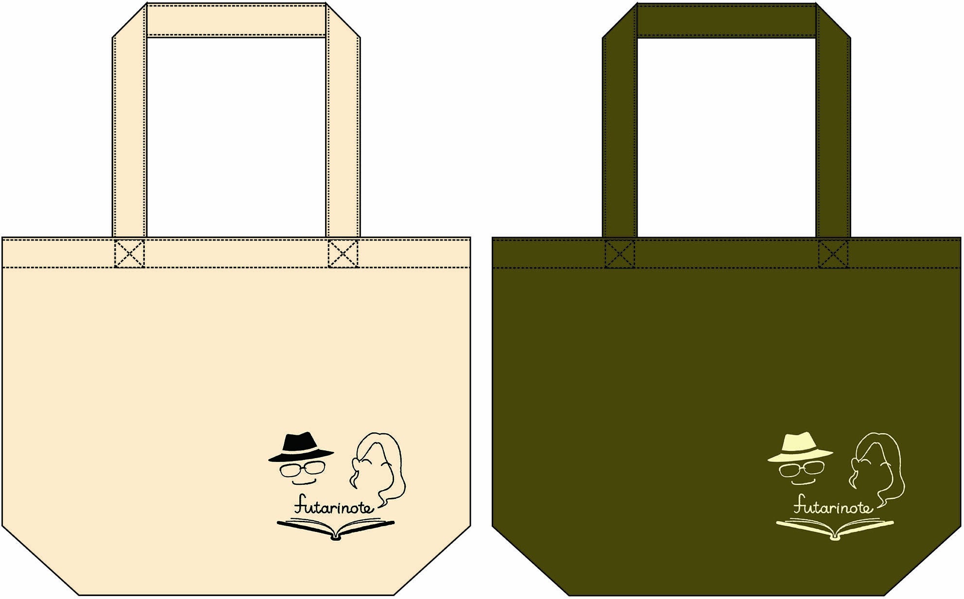 futarinote 結成1周年を記念して作られたロゴ入りトートバッグ。ロゴデザインはタゴカオル氏。A4サイズの書類がちょうど入るお使いいただきやすいサイズです。カラーはシンプルなベージュと、少し珍しいサンドベージュの2種類。