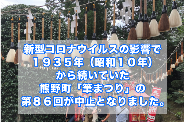 新型コロナウイルスの影響で1935年(昭和10年)から続いていた熊野町「筆まつり」の第86回が中止となりました。