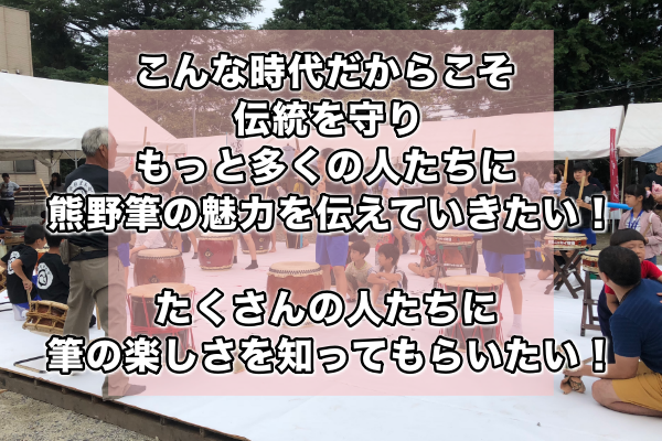 この活動を通して伝統を守り、筆の文化を今まで知らなかった方々にも知ってもらい、筆の楽しさと魅力に気が付いてもらえればと思っています!