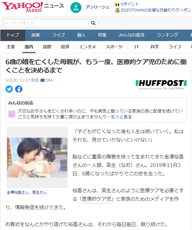 9月2日、ヤフーニュースに掲載されました。