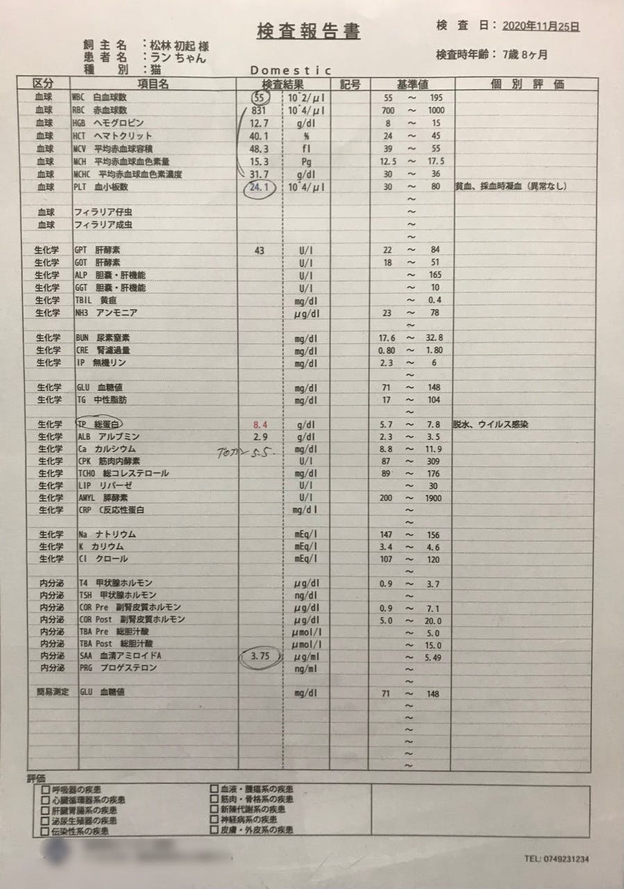エコーは腎臓にFIPのダメージの痕跡はありますが、特に問題視する程では無いとの事でした。