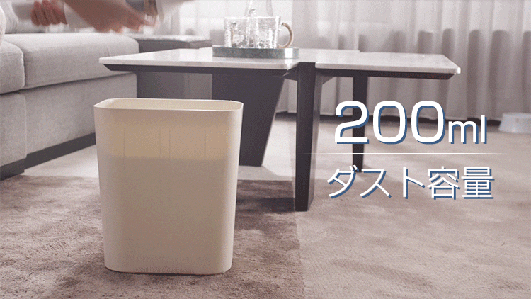 集塵は紙パックレス式。ダストボックス容量は、ハンディクリーナーにしては上出来の200ml。コマメなゴミ捨ては必要ありません。
