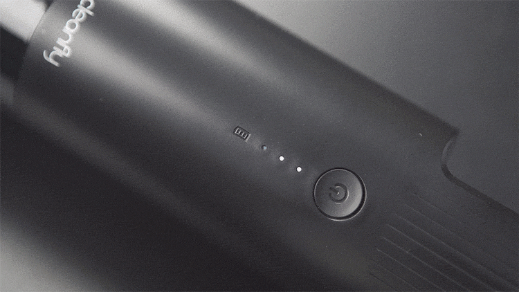 3つのインジケータライトの点灯が1つになると、バッテリーが残り少ない合図。ライトの点灯が3つになるまで充電することをお勧めします。